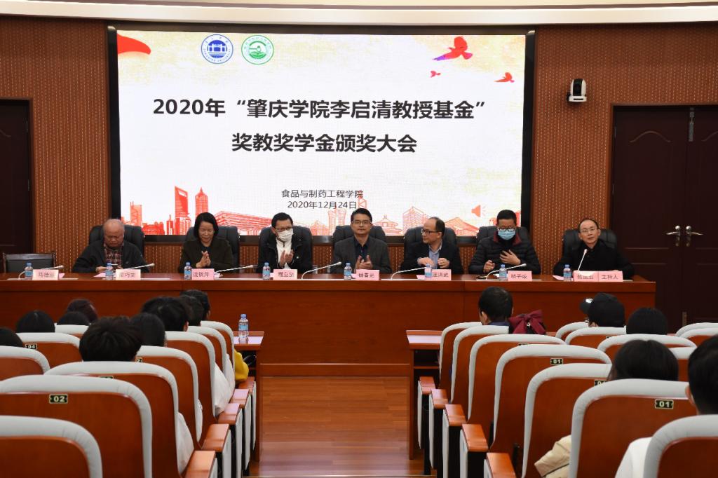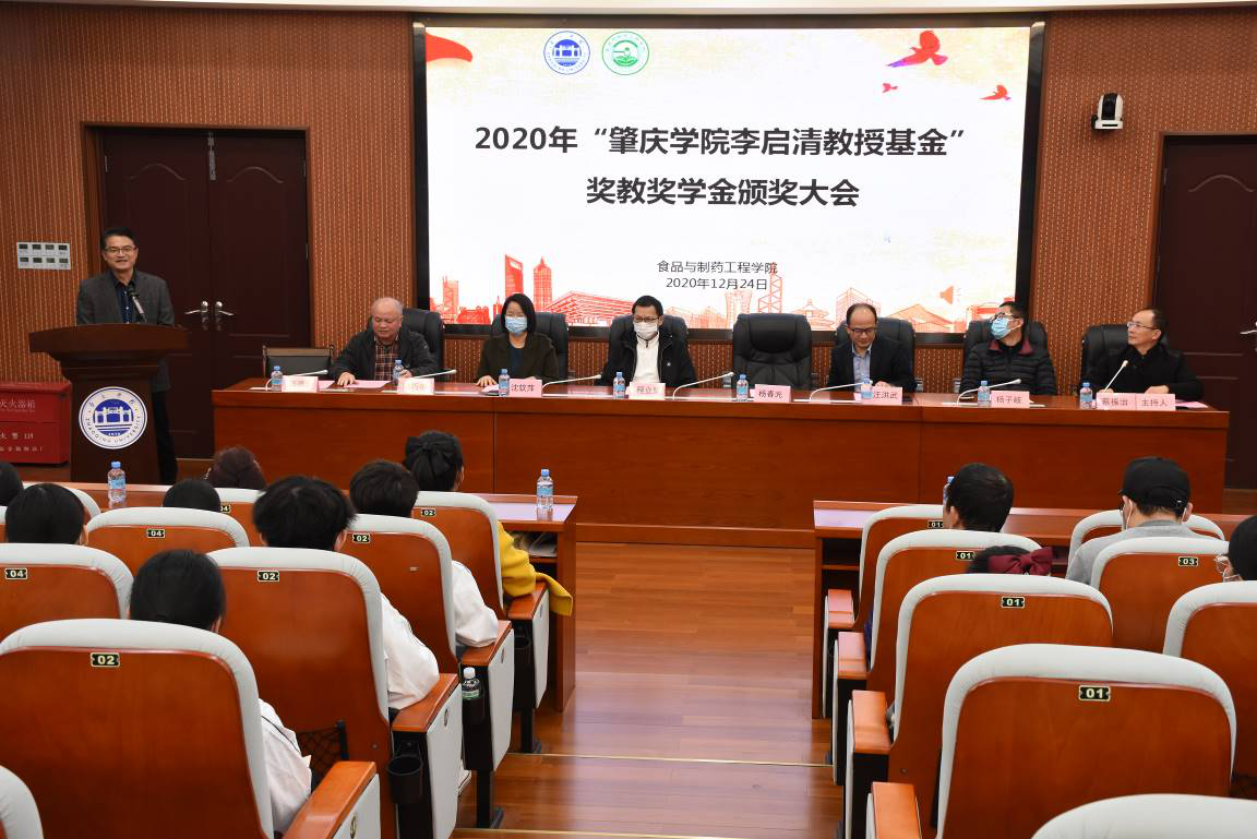 北岭山高,西江水长,砚园情深,为传承李启清教授爱岗敬业、捐资助学的奉献精神,为学院建设和发展传递正能量,12月24日下午,我院于行政楼第二会议室举行了2020年“太阳成李启清教授基金”奖教奖学金颁奖大会,学校教育发展基金会理事长沈钦萍、原化学化工学院副院长梁巧荣、88级校友杨春光、89级校友程立坚、我院院长汪洪武、党委书记杨子岐、副院长马德运、获奖师生以及观礼学生代表共150余人参加了大会。我院党委副书记蔡振治主持仪式。