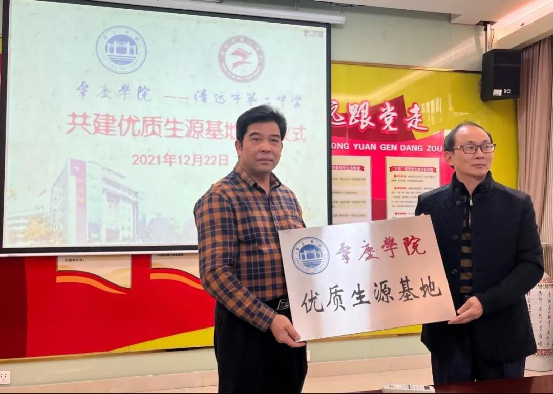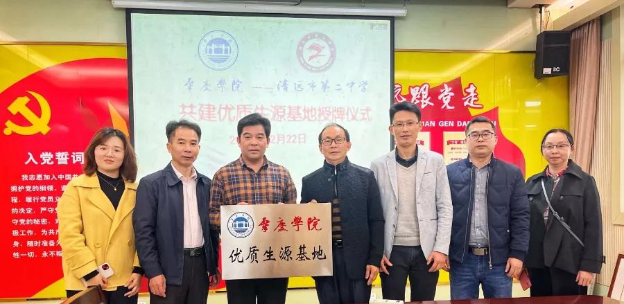 为了提升学校影响力,吸引更多优质生源,搭建我校与地方高中的合作交流平台,积极响应我校“优质生源基地”建设计划,12月22日,ok138cn太阳集团529党委副书记蔡振治、副院长马德运一行赴清远市第二中学,开展“优质生源基地”签约及授牌活动,受到清远市第二中学校长潘新南、党委副书记李北升等领导和老师的热情接待。