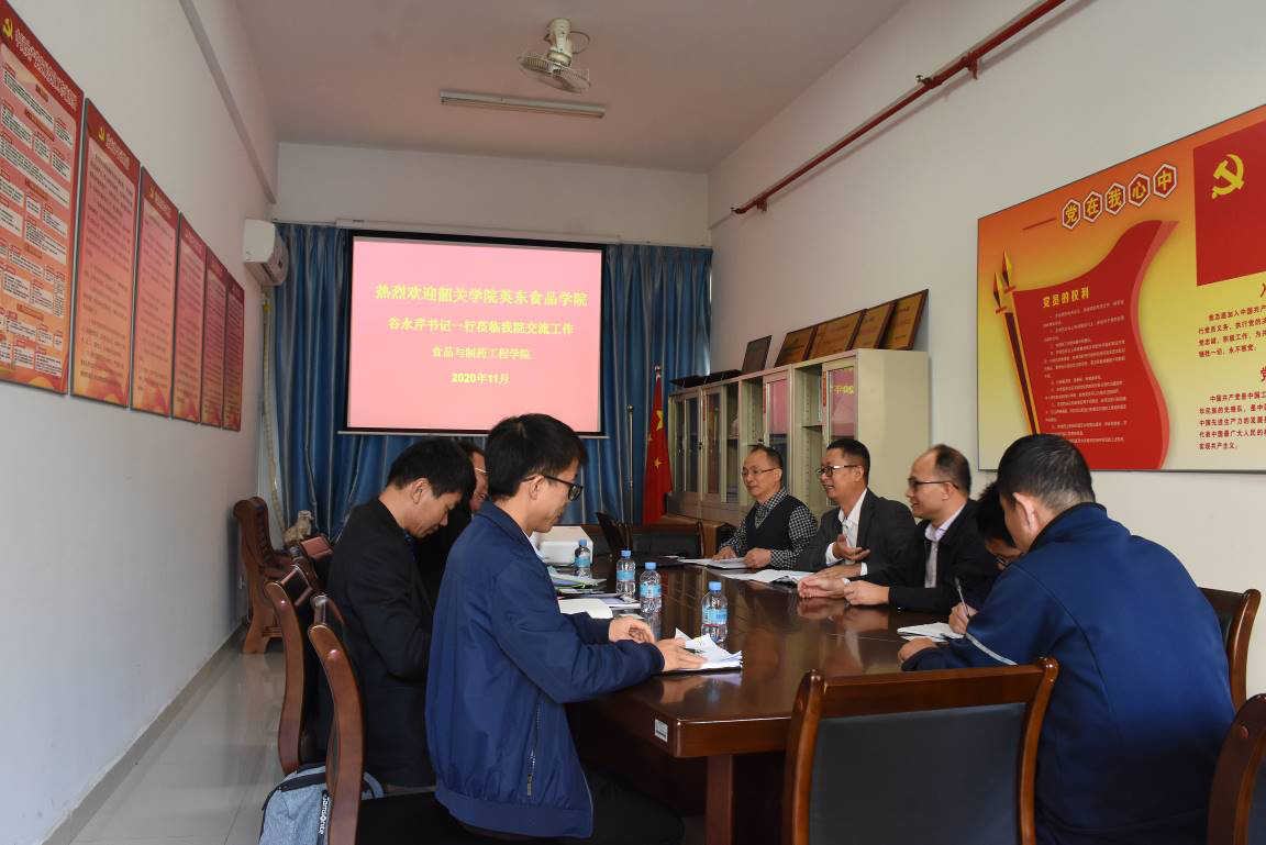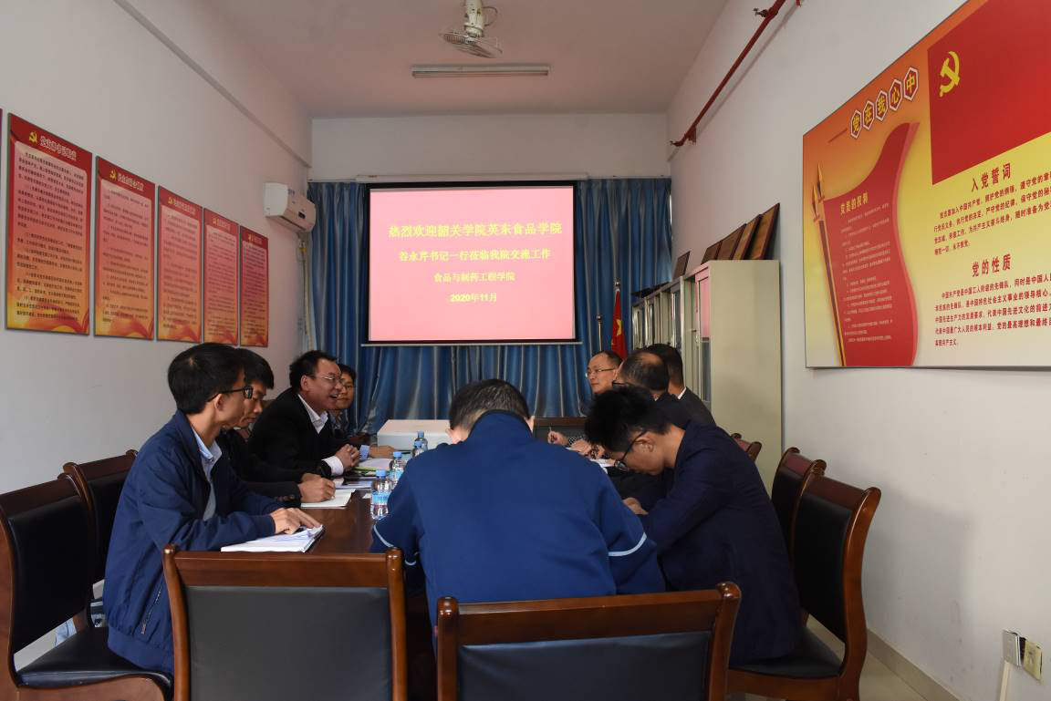 谷永芹对我院在党建方面的措施、成效表示赞赏,认为学院建设全国样板党支部的各项举措扎实有效,党建工作思路清晰,体系完善颇具特色。他介绍了韶关学院英东食品学院的办学历史、党建特色、人才培养、师资队伍、学科建设等主要情况。接着,双方就人才培养、实践教学、学生工作等问题进行深入交流与探讨。