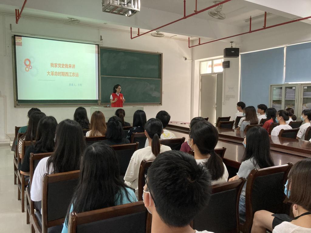 肇庆市博物馆宣教部许辉同志“我家党史我来讲——大革命时期西江农运”为题,讲述第一次国内革命战争期间的西江党史以及西江儿女的革命事迹,为红色基因和革命精神的传承提供精神食粮,引导师生党员学习革命先辈对党绝对忠诚的崇高品质、坚定不移的理想信念以及勇往无畏的革命精神,从中汲取持续深厚的奋斗之力。