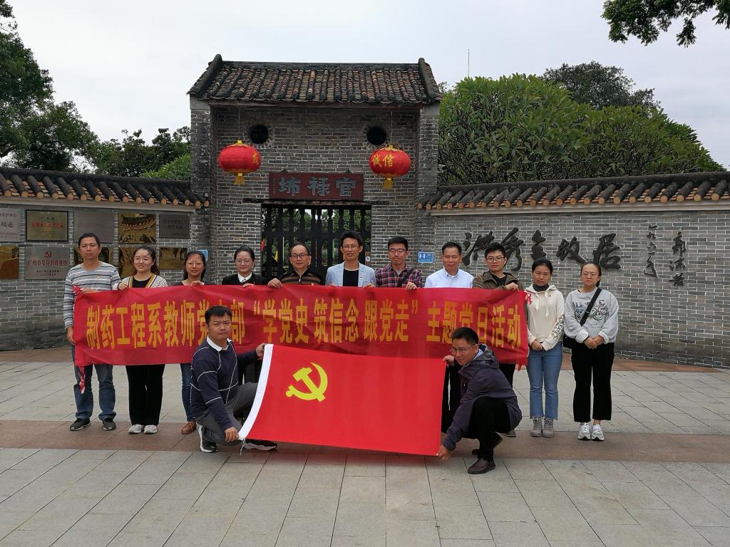 为进一步发挥“全国党建工作样板支部”的头雁引领作用,扎实推进党史学习教育,11月21-22日,我院制药工程系教师党支部赴惠州、广州开展“学党史 筑信念 跟党走”主题党日活动,学院副院长、制药工程系党支部书记马德运、党委副书记蔡振治带领支部的党员教师一行参加了活动。