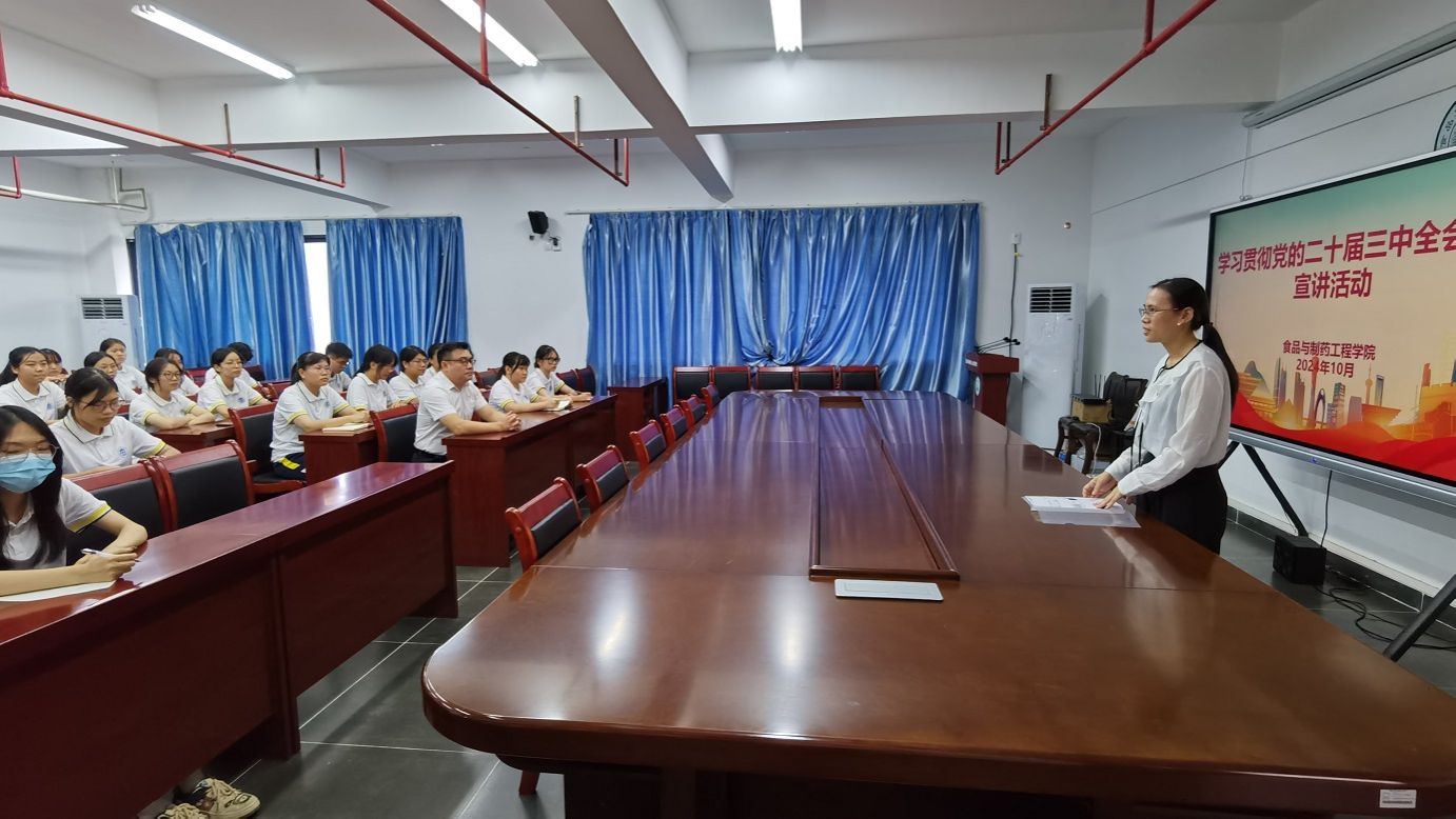 为深入学习贯彻党的二十届三中全会精神,把全院师生的思想和行动统一到全会决策部署上来以实际行动推动学院各项事业发展109日下午,学校党的二十届三中全会精神宣讲团成员、马克思主义学院周春晓副教授开展以《擘画进一步全面深化改革新蓝图》为题的宣讲活动。我院党委书记林晓忠主持,教师党员代表、学生党员代表和入党积极分子等参加活动