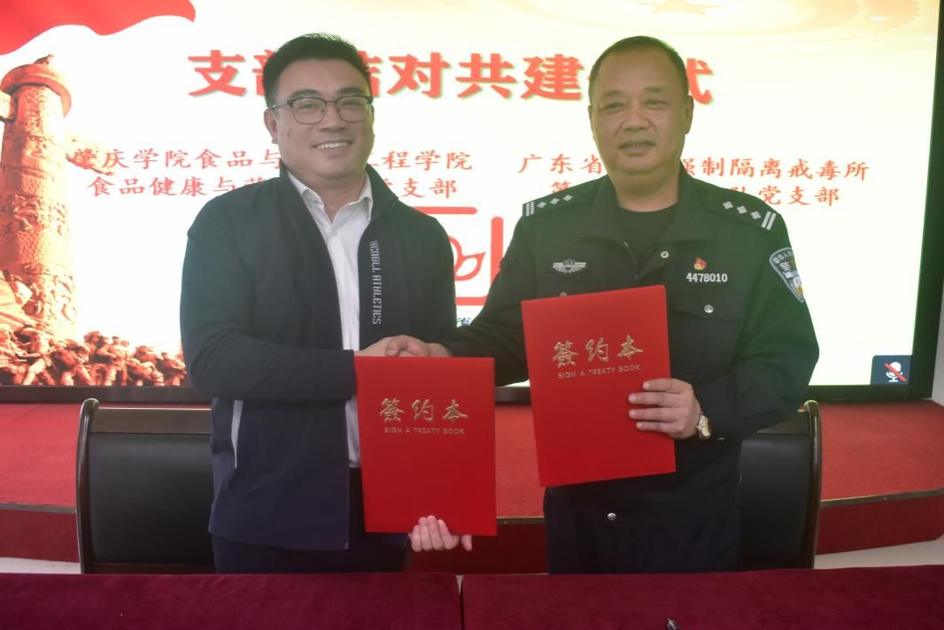 林晓忠一行首先实地参观了戒毒所党建成果展、党员活动室、所医院、所内病患人员配餐中心等场所,并对戒毒所的建设情况进行了解。随后,双方就党建结对共建进行交流座谈。座谈会上,林晓忠介绍了学院师生党员队伍现状和学院党建工作特色,分享了学院党建工作成果。钟伟平政委详细介绍了省四戒所基本情况和发展历程。双方围绕共建目标,提出了思想建设互融、组织建设互促、党员干部互动和优势资源互享四项合作建议,并就此展开具体交流。会后,双方举行了合作签约仪式。