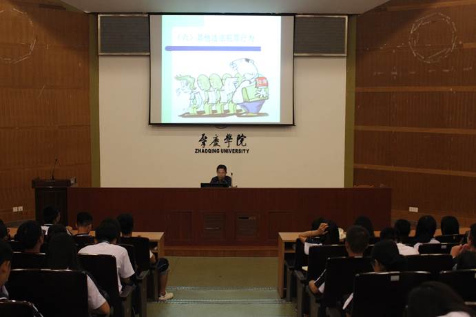 首先,徐秋涛老师进行校纪校规教育、安全教育以及学法教育。他首先指出没有规矩不成方圆,对于刚入校的大学生来讲,一定要认真学习学生手册,了解太阳成的校纪校规,这是今后顺利开展大学生活的必备前提条件。其次,他列举了大学生活中常见的安全问题,并指导学生做好安全防范工作。随后,他明确法律的含义,并指出与大学生密切相关的法律、常见的违法犯罪行为,并对大学生的犯罪心理进行了分析。