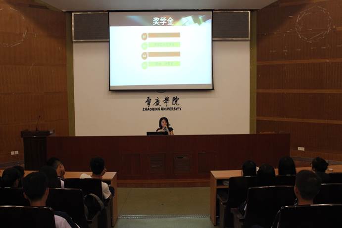 接着,张洁老师对新生进行励志教育,她向新生介绍奖助贷项目,并指出申请要求和申请方式,她强调,大学生应拒绝网贷,提高财产安全意识,不可轻易上当受骗。
