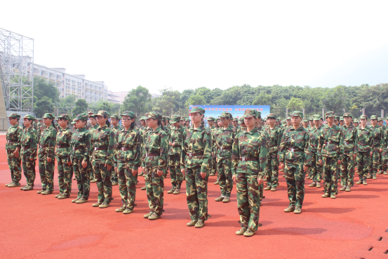 训练时,训练场上不时传来响亮的口号声,高昂的军歌声,让远在训练场之外的人亦能感受到强大的气势。一个个方块阵型,一排排正步练习队列,无不体现出新生们的昂扬斗志,无不散发着青春的军人风采。严格训练的学生教官,不苟言笑的背后,藏着一颗关爱师弟师妹们的心。学生教官耐心地纠正新生们的动作,常常提醒他们要多喝水,在训练休息时与新生谈理想信念,给他们上好大学的第一课。