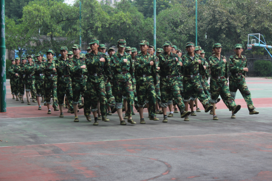 训练时,训练场上不时传来响亮的口号声,高昂的军歌声,让远在训练场之外的人亦能感受到强大的气势。一个个方块阵型,一排排正步练习队列,无不体现出新生们的昂扬斗志,无不散发着青春的军人风采。严格训练的学生教官,不苟言笑的背后,藏着一颗关爱师弟师妹们的心。学生教官耐心地纠正新生们的动作,常常提醒他们要多喝水,在训练休息时与新生谈理想信念,给他们上好大学的第一课。