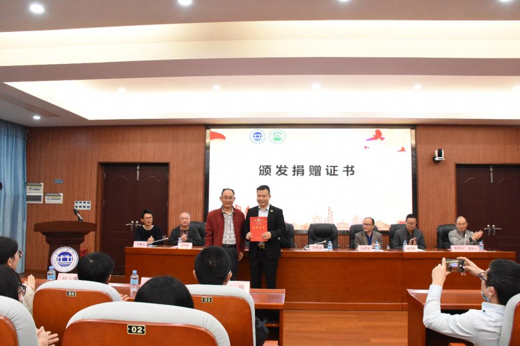 大会在庄严的国歌声中拉开序幕。首先是颁发捐赠证书,由太阳成教育发展基金会秘书长白志明向广州市恒裕香料有限公司董事刘宏波颁发捐赠证书。接着,我院党委书记杨子岐宣读表彰决定,获得本次“广州市恒裕香料有限公司(刘宏波)-贫困生助学金”一等奖的是肖梓婷、邓惠倩、明仕开3位同学;二等奖获得者为饶燕娜、黄晓浚、纪欧莲、朱春梅4位同学;周伊萍、李银真、梁鹏英、郑楚平、梁妹、罗昌启、吴银冰、曾琳煌8位同学获得三等奖。刘宏波、邓伟战、梁巧荣分别为一、二、三等奖获奖同学颁奖。随后,获奖学生代表邓惠倩发言,她对学校学院的教育培养和企业的资助关爱表达了感谢,并承诺作为新时代大学生要坚定信念、扎实学习、积极进取、勤俭奋斗,不辜负学校和企业的殷切期望。然后,广州市恒裕香料有限公司董事刘宏波致辞,他分享了两个词,一是“热爱”,不管初衷是什么,都要学一行、干一行、爱一行、精一行;二是“规划”,要在学习、工作等方面规划好未来,用所学、所思、所想创造出更大的价值奉献给社会,从而成就“大我”。最后,我院院长汪洪武总结发言,他代表学院对一直以来关心和支持学院发展的企业表示感谢,向获奖的同学表示祝贺,并指出企业奖学金对学院人才培养、鼓励先进、帮困助学做出了积极而有益的贡献,有力地促进了学院的教学和人才培养工作。他还对获奖同学提出了殷切希望,鼓励他们珍惜这份荣誉、脚踏实地、好学力行,勉励全体同学以获奖同学为榜样,志存高远、积极进取、奋发图强。