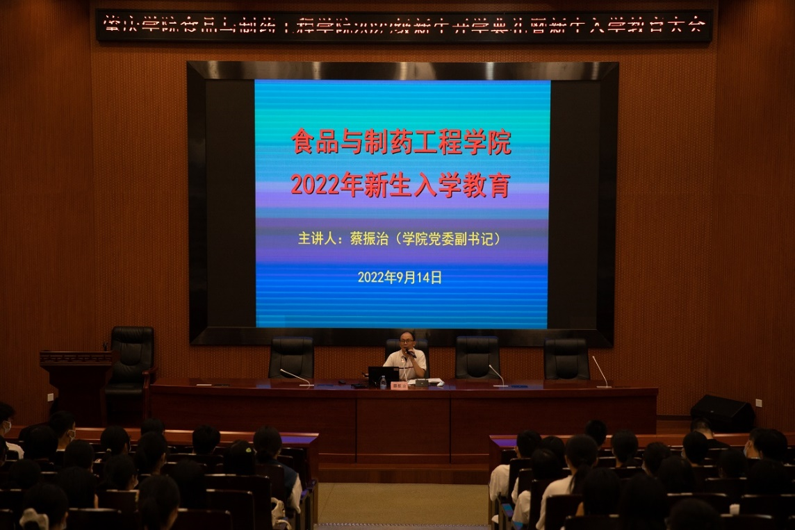金秋砚园,硕果飘香;天高云淡,情系瀚墨。9月14日上午,我院在图书馆学术报告厅举行ok138cn太阳集团5292022级新生开学典礼暨新生入学教育大会,以庄重而热烈的典礼仪式,诚挚欢迎320名2022级普高新生的到来。我院院长汪洪武,党委书记杨子岐,副院长马德运,党委副书记蔡振治,党委委员、专职组织员徐秋涛,党委委员、办公室主任胡韧,食品科学与工程系主任刘永,食品质量与安全系主任姚夙,实验室主任刘钊,教师代表李汉成、叶银坚,全体辅导员以及我院2022级全体学生参加了本次大会。大会由蔡振治主持。