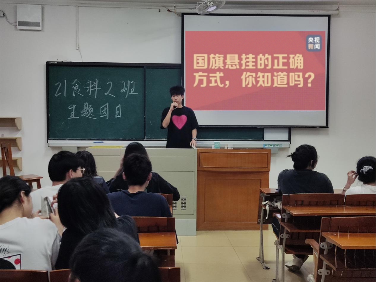 学院党委高度重视国旗法学习的全面性,充分发挥领导作用,组织召开全院教师大会,党委书记林晓忠带领教师们一起学习了《中华人民共和国国旗法》。同时,在学院党委的统一部署下,各班级团支部积极开展主题团日进行学习,并策划开展了“我和国旗合个影”活动。