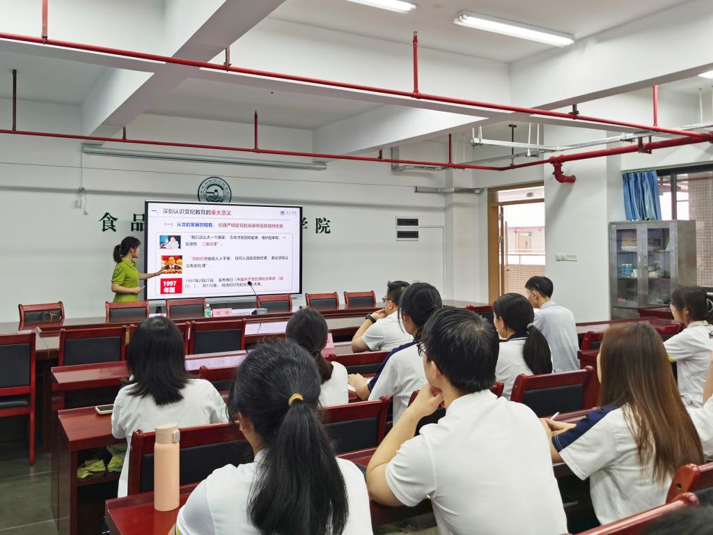 为深入学习贯彻习近平总书记关于党纪学习教育的重要讲话和指示精神,学习修订后的《中国共产党纪律处分条例》,确保党纪学习教育走深走实、取得实效,6月5日下午,我院邀请马克思主义学院骨干教师刘琼在实训中心301作题为《严明纪律教育 推进党的自我革命——〈中国共产党纪律处分条例〉内容解读》的专题宣讲,学院党委书记林晓忠主持,我院学生党支部书记、辅导员、学生党员、发展对象等参加学习。